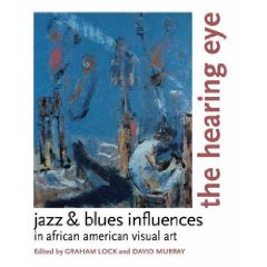 The recent book the hearing eye details “jazz and blues influences in african american Visual Art.” Essays include Robert Farris Thompson on Jean-Michel Basquiat and Paul Oliver on early blues advertising art. Artists covered include Bob Thompson, Romare Beardon, photographer Roy DeCarava, Joe Overstreet (whose art graces both of the covers), Norman Lewis, Sam Middleton, Rose Piper and others.